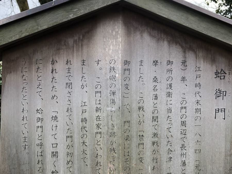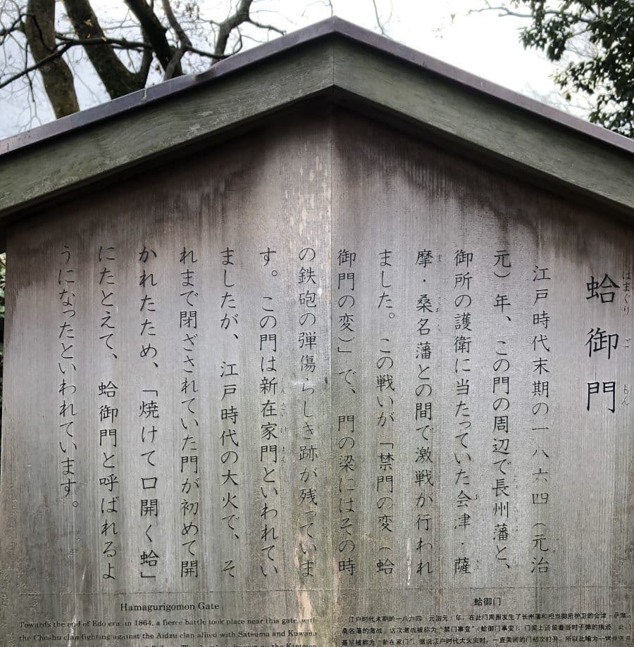 ▼下の写真は2019年12月に蛤御門を訪れた時の写真、銃痕がはっきり残っています。