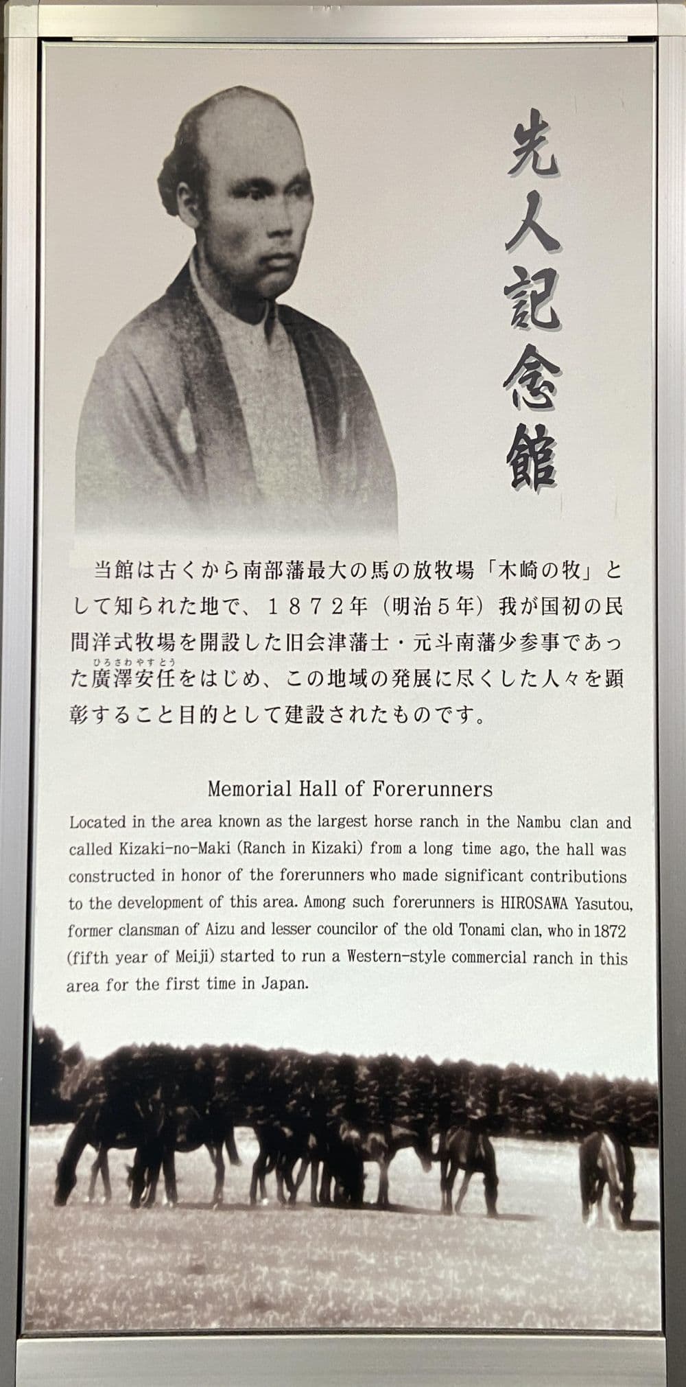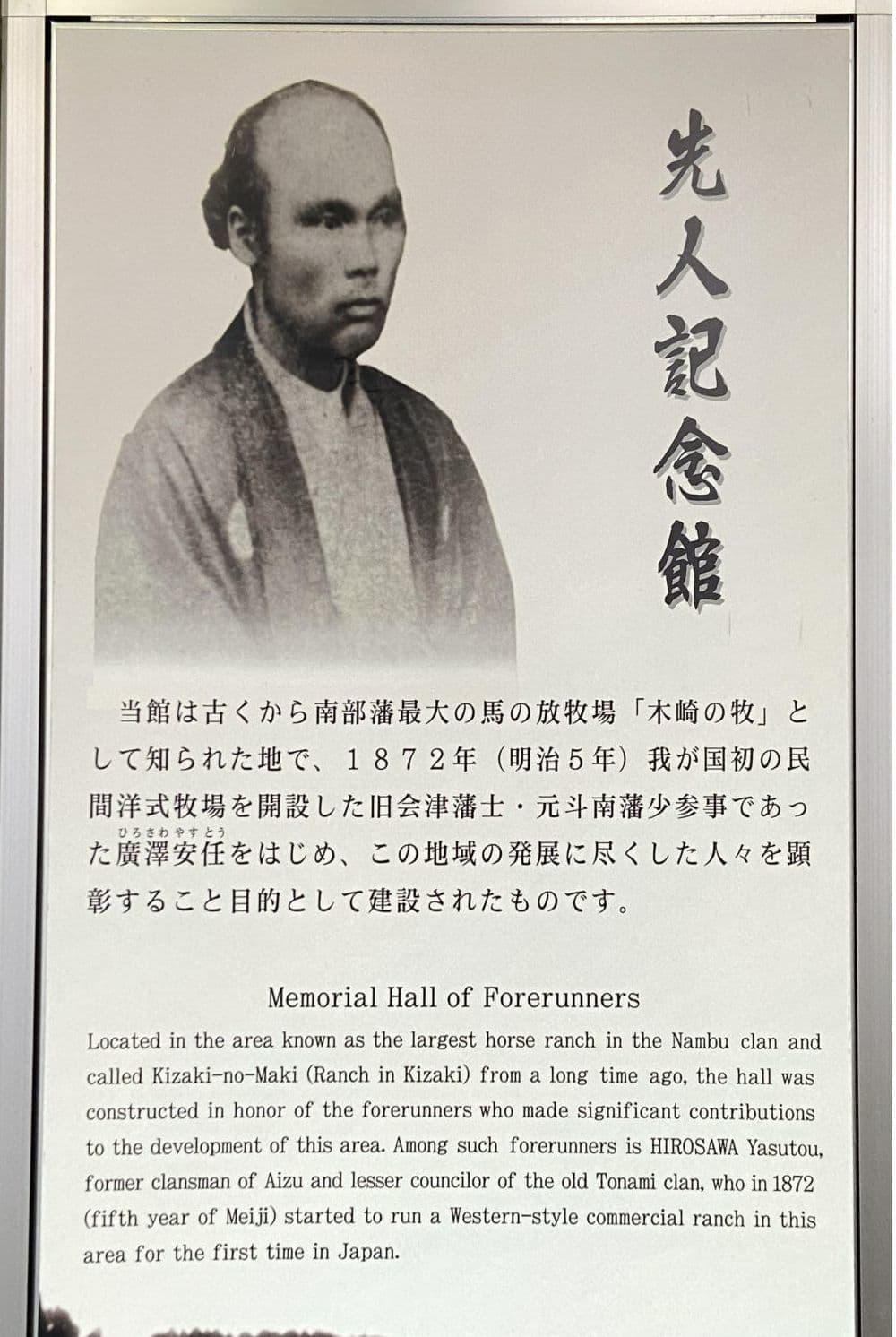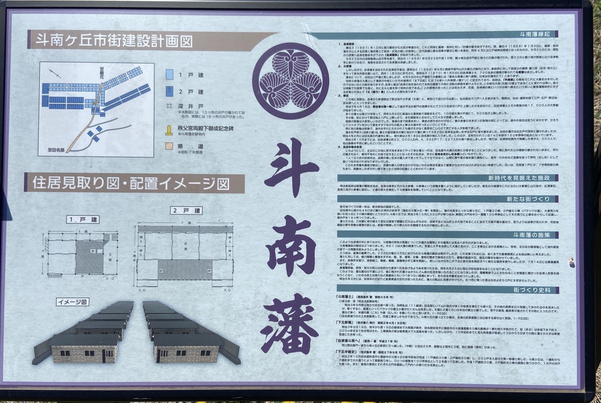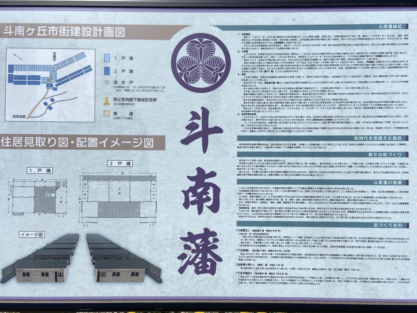 さて前置きが長くなりましたが、戊辰戦争で敗れた会津が家名再興を許され新天地となったのが斗南藩3万石です。容保の嫡男の藩主松平容大は幼く、斗南藩権大参事に就いた山川浩(大蔵、NHK大河ドラマ「八重の桜」では、大好きな俳優の一人の玉山鉄二が演じていましたね)らが、最果ての地で復興に尽力しますが、1871年(明治4年)7月1の廃藩置県で斗南県となり、さらに9月に青森県に編入され、わずか2年足らずで斗南藩は消滅しました。その会津復興の夢の地であったこの地域を訪ねる旅が叶いました。