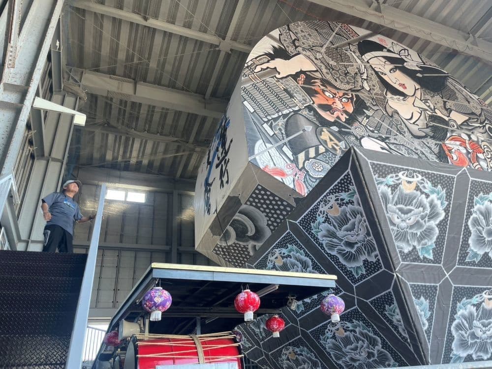 毎年8月2~3日に開催される平川ねぷたまつりで実際に運航される、世界一の扇ねぷたの展示施設を訪れました。